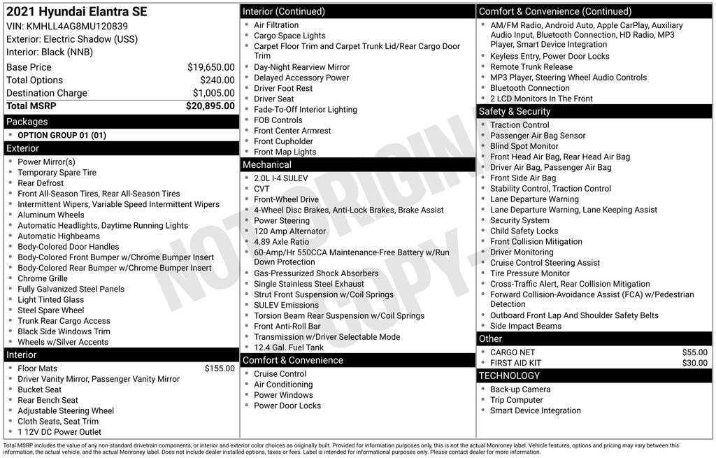 Odometer is 32864 miles below market average! Electric Shadow 2021 Hyundai Elantra SE 4D Sedan FWD CVT 2.0L 4-Cylinder DOHC 16V CARFAX One-Owner.