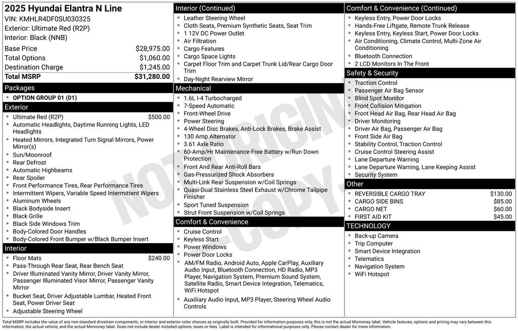 Clean CARFAX. Ultimate Red 2025 Hyundai Elantra N Line 4D Sedan FWD 7-Speed Dual Clutch DCT I4 CARFAX One-Owner.